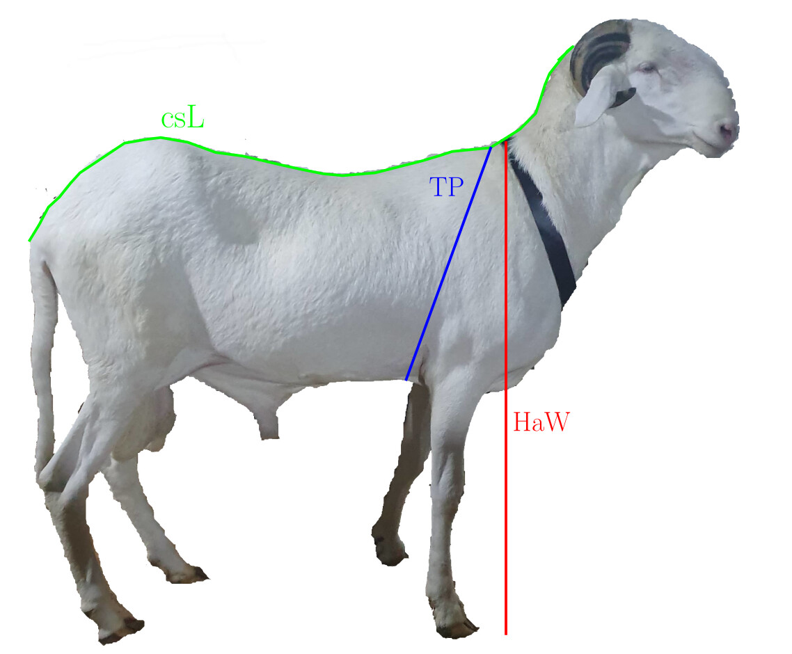 Considering the height at withers [HaW], the thoracic perimeter [TP], and the liveweight [LW], we can classify the Ladoum sheep as a large sized animal.